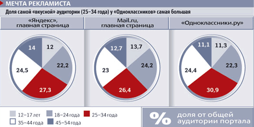 Согласно декабрьскому исследованию Gallup, в будни «Одноклассники» посещает примерно 1,6 млн уникальных пользователей. Больше только у «Яндекса» (2,2 млн пользователей) и Mail.ru (2,1 млн). У Rambler всего 1 млн. При этом, говорит Пасюков, у «Одноклассников» куда более «ровная» аудитория, чем у поисковиков: «Тут заводят анкеты, как правило, люди от 25 лет. А школьники и студенты, несмотря на название сайта, здесь куда более редкие гости».