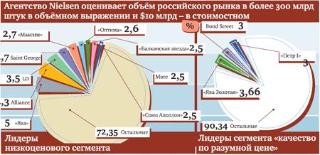 Но на этот раз кредит доверия выдан не только извест-ной западной фирме, но и российской марке, с которой не побоялся выйти мировой табачный гигант "Бритиш Американ Тобакко". В портфеле его российского представительства десяток супербрендов: Dunhill, Kent, Lucky Strike, Pall Mall, Vogue, Viceroy, Rothmans, а экспорт распространяется на Азербайджан, Беларусь, Казахстан, Грузию, Армению, Украину, Молдавию, Узбекистан, Таджикистан, Туркменистан и Киргизию.