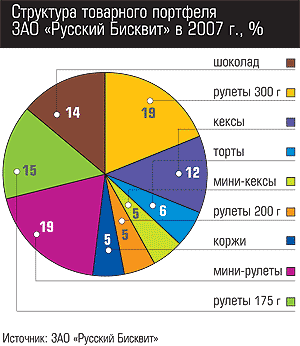 Структура товарного портфеля «Русского Бисквита» сегодня достаточно диверсифицирована и пополняется новыми продуктами. «Нам удается не только сохранять долю рынка, но и увеличивать ее благодаря эффективному управлению товарным портфелем, расширению ассортимента и, соответственно, большему охвату рынка, – подчеркивает директор по маркетингу „Русского Бисквита“ Сергей Матюшев. – Как только спрос на какой-то продукт начинает снижаться, мы сразу запускаем новый вид продукции – эта стратегия доказывает свою правильность».