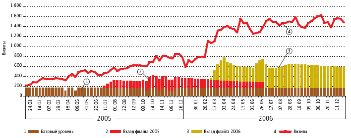 уровень базовых визитов за один год вырос более чем в три раза. Каждую неделю