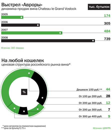 В прошлом году "Аврора" сумела продать 484 тыс. бутылок, то есть даже недостроенный завод загружен примерно наполовину. В отраслевых мерках это крохи - МВЗ под одним лишь брэндом "Арбатское" продает более 1 млн бутылок в год. Меж тем в планах "Авроры" достроить предприятие и в 2010 году реализовать 2,2 млн бутылок при средней цене около $10.