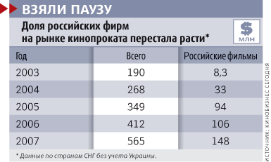 «В 2000 г. у нас весь оборот составил $4 млн. Это были сотни фильмов, то есть каждый стоил по $10 000-30 000», вспоминает Шестаков. На картины подороже у каналов не было денег. По оценке Ассоциации коммуникационных агентств, в конце 1990-х объем российского рынка телерекламы не превышал $550 млн. К тому же россияне, приученные видеосалонами к фильмам с участием Стивена Сигала и Чака Норриса, ничего другого смотреть не хотели.
