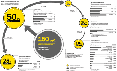 Розничная цена одной игры, по словам Ильи Венкова, примерно $5. Однако львиная доля лавров, точнее, денег достается компаниям, которые вообще никак не участвуют в разработке или размещении игр, но проводят SMS-платежи — сотовым операторам (см. схему на стр. 38-39).