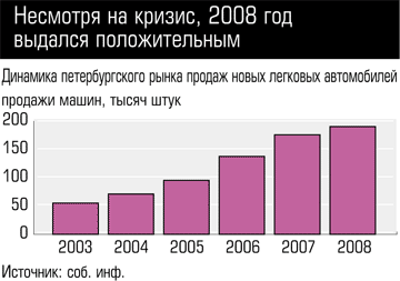 Петербургский сценарий вполне мог бы повториться и для всего российского рынка. Построенные на европейских моделях развития автомобилизации прогнозы аналитиков, обещавших рост рынка вплоть до 2015 года, вряд ли оправдались бы даже без учета влияния разразившегося мирового финансового кризиса.