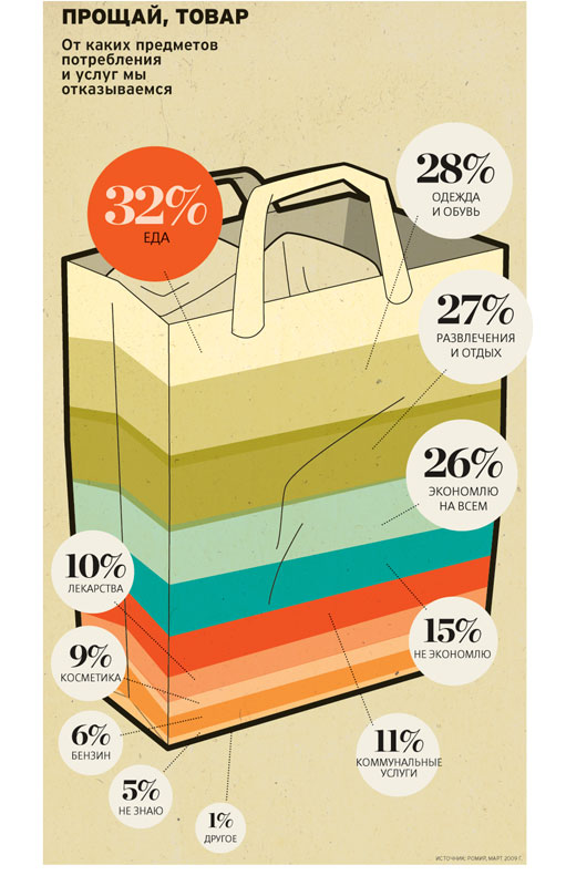 Какие бы хитрые способы ни использовали розничные продавцы, чтобы приманить потребителей, результат сейчас зависит не только от них. Покупательские настроения — вещь непредсказуемая. Особенно если речь идет о покупателях российских и о кризисе. Прошлой осенью, когда он бушевал уже по всему миру, фонд «Общественное мнение» не постеснялся задать своим респондентам вопрос: «Как вам кажется, мировой кризис уже начался?» И не зря, оказывается, спросил. Дело было в конце сентября — российские биржевые индексы упали больше чем вдвое, проблемы «КИТ Финанса», Связь-банка, «Глобэкса» были у всех на виду, но в общей сложности 31% опрошенных заявили, что кризис «еще не начался, но скоро начнется» или «в ближайшее время вообще не предвидится». Не надо думать, что оставшееся большинство осознавало, что происходит. Догадывались лишь 29%. Остальные затруднились с ответом — вряд ли это говорит о понимании.