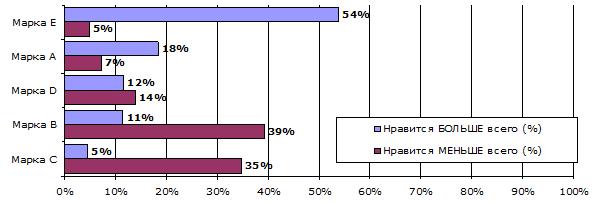 Напомним, что с помощью данного теста легко можно определить наиболее и наименее привлекательную марку товара.