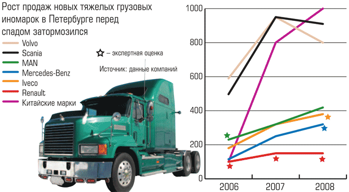 В 2008 году почти половина из 75 тыс. проданных в России новых тяжелых грузовиков были импортированы. Как и на рынке легковых автомобилей, общие итоги прошедшего года финансовый кризис испортить не успел – многие производители тяжелых грузовиков в годовых отчетах отмечают рост российских продаж.