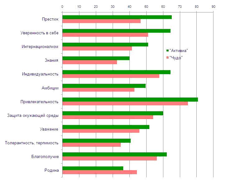 Различия в ценностном восприятии брендов "Активиа" и "Чудо"