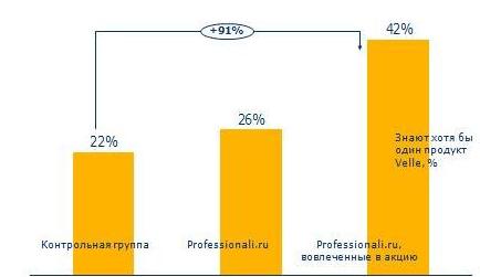 Примечание: знание марки Velle в контрольной группе составило 22% -, а в группе вовлеченных в акцию - 42%.