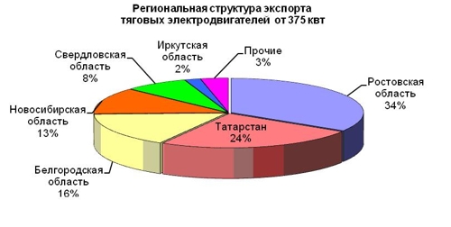 Среди экспорта электротехнических товаров хочу выделить продукцию, отличившуюся годовым ростом продаж на 33%, что уже превысило 4 млн долларов. К сожалению, достаточно редко встречаются рынки, на которых наблюдается активность сразу многих региональных бизнесов, самостоятельно и успешно выстраивающих свою экспортную стратегию. Экспорт тяговых электродвигателей – один из таких примеров (график 6). Обратите внимание, когда имеет место здоровая конкуренция, тогда и имеется растущий спрос и растущий сбыт. Даже в кризис и даже за рубежом.