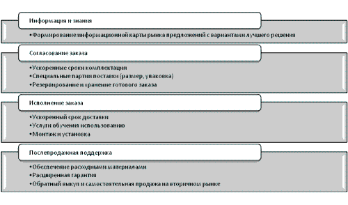 Смысл создания расширенного уровня сервиса в предложении клиенту ряда услуг с большей ценностью взамен услуг, которые клиент вынужден покупать у внешних провайдеров параллельно или последовательно с совершением сделки по вашему основному продукту.