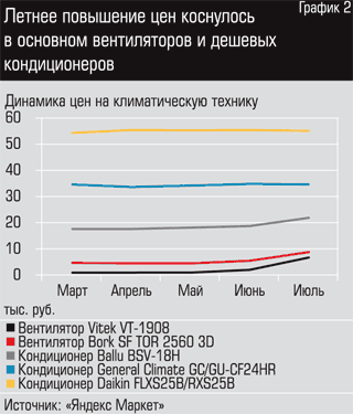Рыночный ажиотаж, вызванный жарой, привел к росту цен не только на само оборудование, но и на его установку и обслуживание. Стоимость этих услуг в пик сезона выросла тоже в два-три раза, с 7–10 тыс. рублей до 25–30 тыс. А некоторые фирмы, по словам очевидцев, не стесняются устраивать аукцион среди заказчиков, доводя конечную стоимость до 50–60 тыс. рублей.