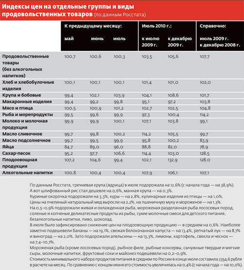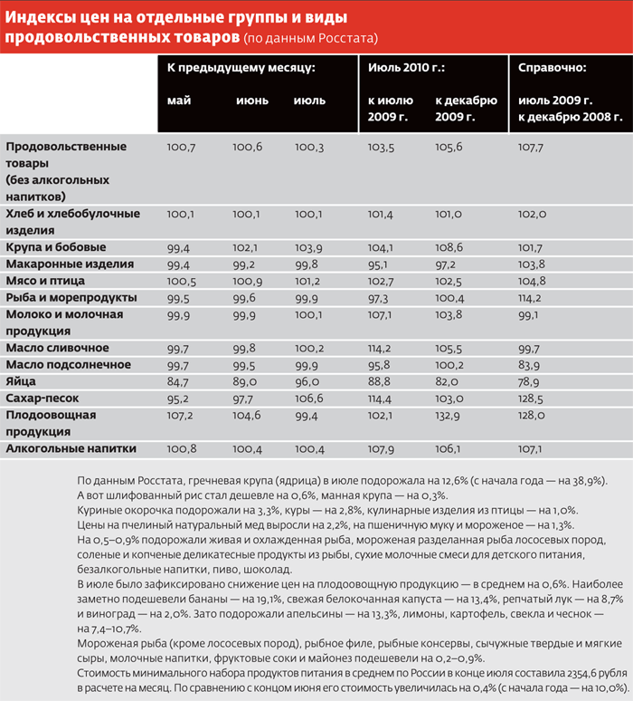 Тем не менее, по предварительным оценкам ИК Nielsen, июль стал первым месяцем начиная с сентября 2008 года, когда продуктовый рынок показал положительную динамику по объему. Возможно, это произошло потому, что во многих городах люди в ожидании дальнейшего роста цен начали скупать крупы, муку, макароны и сахар.