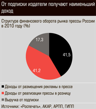 Сегодня более половины всех газет и журналов реализуется через розницу, но радости издателям это не доставило: отучив читателей от подписки, они не сумели приучить их покупать издания в прежнем объеме. Часть населения переориентировалась с печатных изданий на интернет, не способствует увеличению спроса на прессу и инфляция. В кризис население потеряло в доходах, цены на продовольствие и другие товары растут, и в ближайший год потребители вряд ли начнут сокращать свои затраты на предметы первой необходимости в пользу газет и журналов.