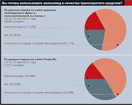 "Нам надо брать пример с Германии,— уверяет Налимов.— Они целенаправленно пересаживались на велосипеды и сделали это за восемь лет. Согласно национальному плану развития велотранспорта, построено 10 тыс. км велодорожек, а 10% поездок делается на велосипедах. В Берлине, Мюнхене пробки практически исчезли".