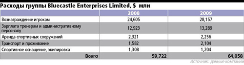 Хотя российские клубы не публикуют свою финансовую отчетность, ЦСКА ежегодно раскрывает основные статьи расходов и доходов. Согласно плану бюджета на 2008 год, расходы должны были составить $50 млн, по плану бюджета на 2009 год - $61,3 млн. Теперь есть возможность сравнить эти данные с финансовой отчетностью группы Bluecastle Enterprises Limited.