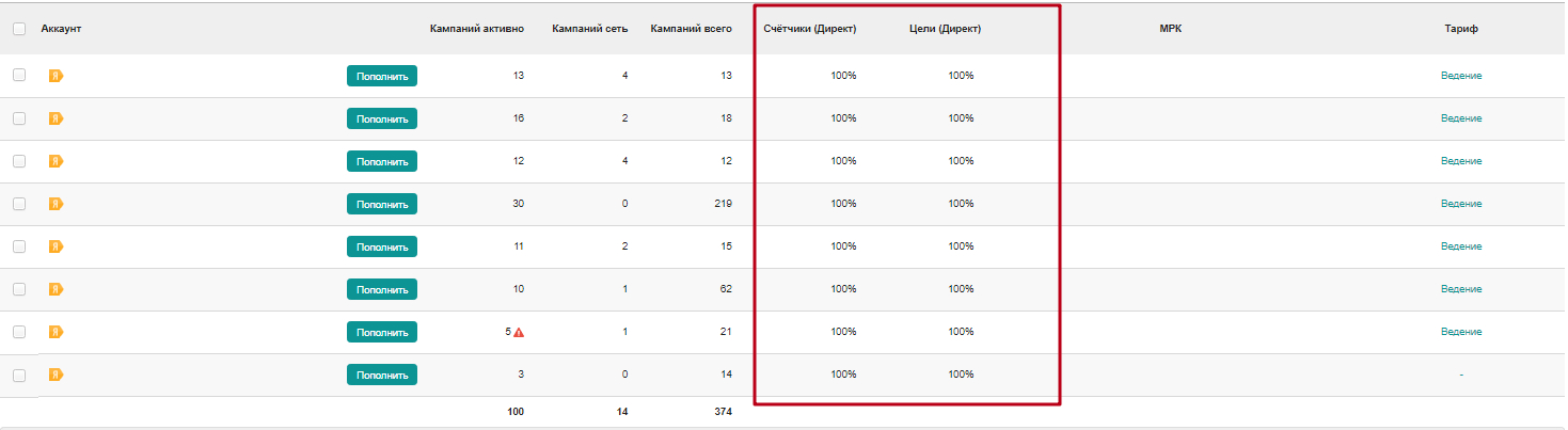 В свою очередь на платформе для управления контекстной рекламой Origami есть инструмент, который проверяет привязку счетчиков и целей Метрики к каждой кампании Директа: