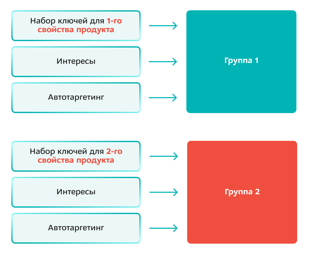 Оптимальной структурой РСЯ является «1 кампания —1 продукт/услуга», «1 группа – одно свойство продукта/услуги». Излишнее дробление будет всегда менее эффективно.