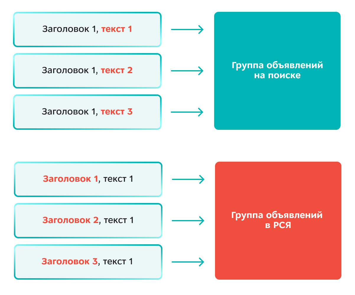 Отличие в подходе к созданию объявлений для РСЯ от объявлений на поиске:
