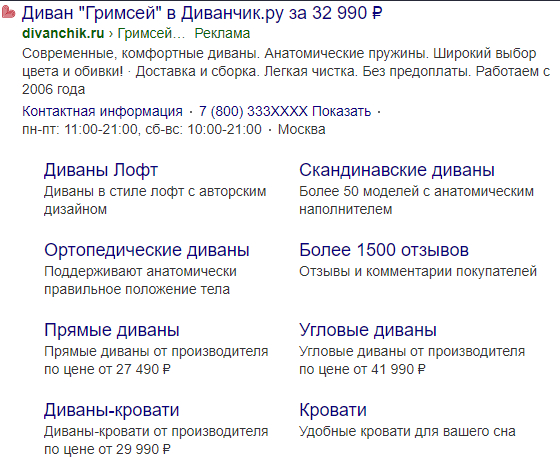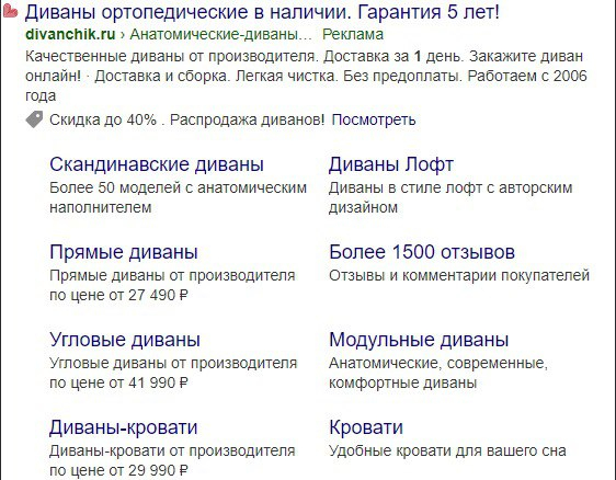 Ретаргетинг на поиске и в сети. Запускали классический сетевой ретаргетинг, но получили с него минимальное количество заказов и с высоким СРО. Это было ожидаемо, так как в мебельной сфере данный тип кампаний зачастую показывает низкую эффективность, но хотели протестировать все варианты.