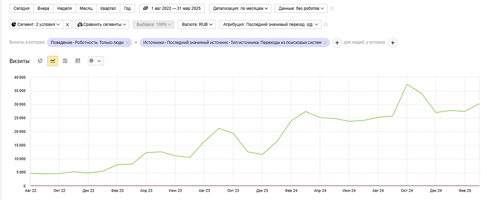 Когда сайт выглядит проработанным, но трафик — на удивление низкий, важно найти причину и нестандартные пути роста. В этом кейсе делимся, как обошли технические ограничения и помогли клиенту привлечь релевантный трафик. Работа велась с августа 2022 года по март 2025-го.