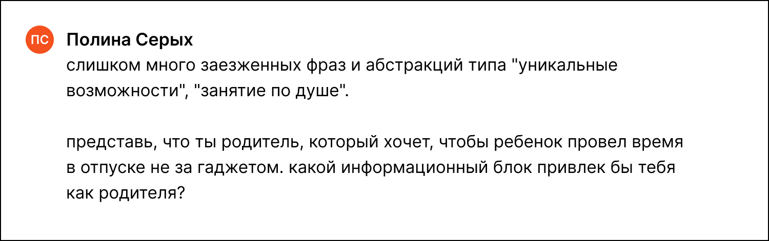 ChatGPT неплохо отрабатывал задачи копирайтера, но всегда находилось, что улучшить. В среднем каждый результат имел пять итераций: содержание уточнялось, более четко формулировалось, дополнялось важными деталями. Бывало, ChatGPT ленился и просто перефразировал то, что предоставлял редактор. В таких случаях мы прямо указывали ИИ на это: