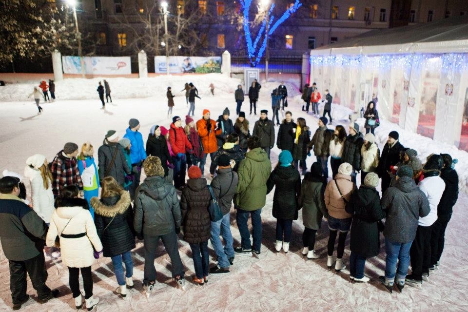 Все удивительно дружно катались на коньках, заводили новые приятные знакомства и радовались приятной зимней погоде, которая наконец-то установилась в Москве. Закончился вечер флеш-мобом, когда все кто был на катке построились в фантазийное сердечко и дружно включили вспышки на мобильных телефонах.