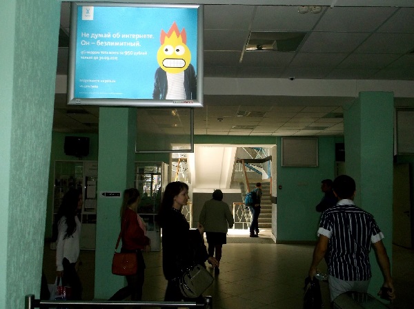 В indoor-кампании было задействовано около 400 поверхностей формата А1, А0. Конструкции с постерами USB модема Yota разместились в наиболее проходимых зонах учебных заведений, что обеспечило контакт с целевой аудиторией. Заказчиком кампании является сетевое агентство OMD Media Direction.