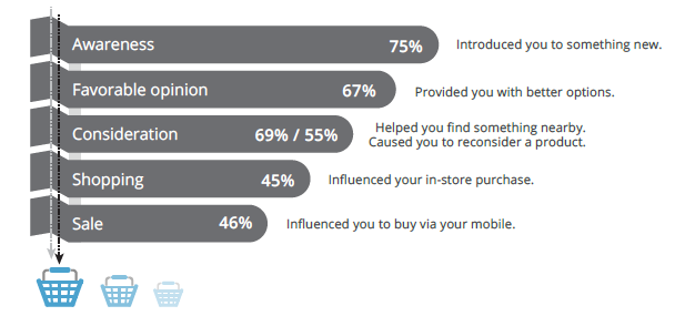 Те выводы, которые делаются исходя из проводимых исследований в области мобильной рекламы говорят нам о том, что только за счёт мобильной рекламы можно повысить не только узнаваемость бренда, но и увеличить число продаж. И этот факт подтверждает исследование проведенное компанией Decision Fuel&On Device в феврале прошлого года.