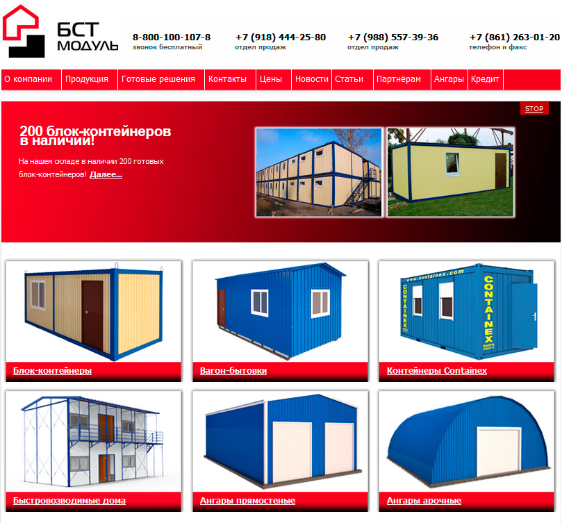 Это сайт одного из крупнейших производителей модульных зданий, работающих в Южном Федеральном округе. «БСТ-Модуль» - яркий пример компании, работающей в сегменте b2b. Клиенты этого предприятия – ведущие строительные компании региона. Основным товаром, который продвигается на рынок, являются строительные городки и модульные быстровозводимые общежития. Такие здания часто используются не только профессиональными строителями, но и в туристическом бизнесе. Базы отдыха на основе блок-контейнеров – решение для тех, кто не хочет связываться с капитальным строительством. На сайте есть множество интересных и полезных статей на эту и другие темы.