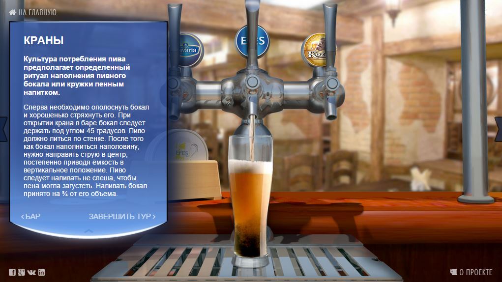 Теперь на сайте www.efesrussia.ru можно посетить трехмерную виртуальную модель завода и проследить за каждым этапом изготовления пенного напитка: от отбора и заготовления солода до подачи готового продукта на кран в баре. Подробно прорисованная 3D-модель, созданная по образу одного из действующих предприятий Efes Rus, позволяет заглянуть в каждый цех и убедиться в прозрачности автоматизированного производства.