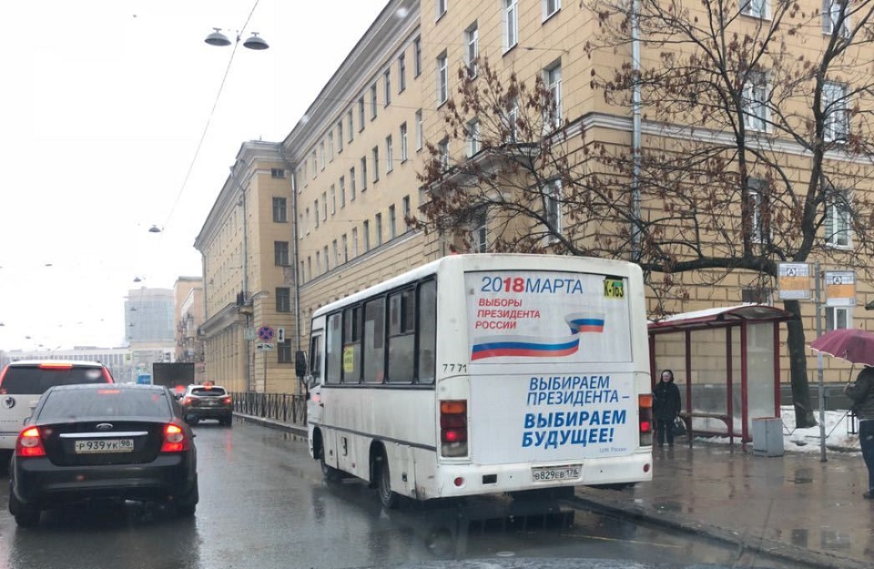 На автобусах ПТК размещена информация о предстоящих 18 марта выборах Президента России.