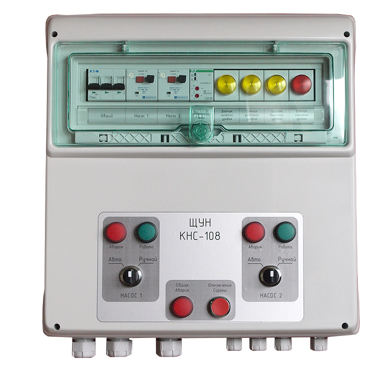 - управление двумя насосами с помощью сигнала от поплавковых выключателей;
