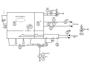 Реализацией проекта занимался ИП Кротюк А.А. (г. Бийск). Система управления состоит из щита управления котлом ЩУК, датчиков и исполнительных устройств. Система автоматизации обеспечивает управление водогрейным котлом типа КВ, топкой с питателем и выгружателем шлака, вентилятором и дымососом. Система автоматизации представляет собой локальную систему управления с применением контроллера ОВЕН ПЛК110-60, который вырабатывает сигналы управления и производит контроль сигналов датчиков аварийных параметров котла и состояния тягодутьевых машин. При выходе любого из контролируемых параметров котла за пределы допуска ПЛК фиксирует возникновение аварийной ситуации, переключает автоматику котла в состояние «АВАРИЯ» и запоминает первопричину аварии. Система управления позволяет регулировать разрежение в топке котла, напор воздуха после вентилятора, температуру воды на выходе из котла. На лицевой стороне щита ЩУК, расположенного на фронте котла установлена сенсорная панель ОВЕН СП270, с помощью которой осуществляется отображение состояния оборудования котла, текущих значений технологических параметров, сигнализация об отклонениях параметров и аварийных ситуациях, а также виртуальные кнопки управления исполнительными механизмами и электродвигателями.