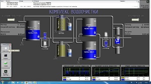 Система мониторинга комплекса водоочистки позволяет выводить информацию о состоянии исполнительных механизмов, задвижек и переключателей вывести на компьютер диспетчера, обеспечивать наглядную индикацию состояния узлов и исполнительных элементов. Кроме того, на экране ПК отображается информация о расходе воды, а в случае возникновения аварийной ситуации включается аварийная звуковая и световая сигнализация.