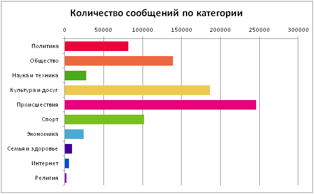 Больше всего сообщений на неделе было оставлено на темы, относящиеся к категории «Происшествия», - около 250 000 сообщений. Из них 60% (150 000 сообщений) были посвящены обсуждению трагической гибели актера Пола Уокера.