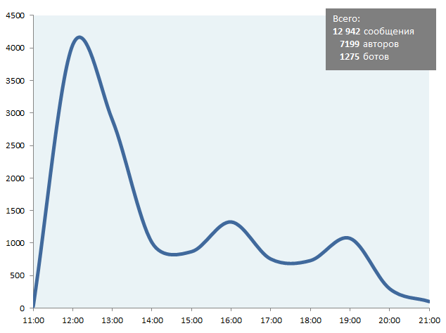 (среднее для 15 событий, набравших 10- 15 тысяч сообщений)
