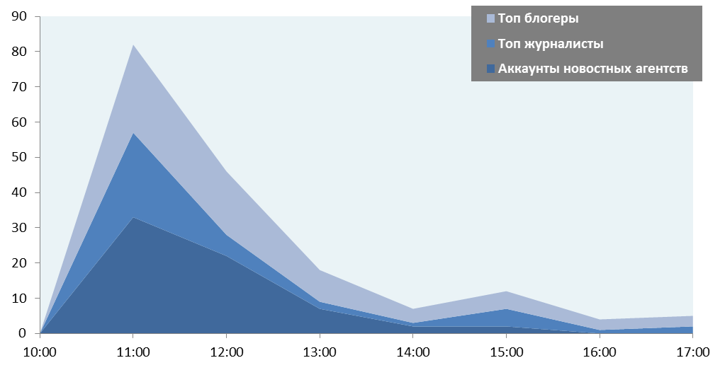 Однако интересно отметить, что самые первые сообщения об Указе содержали ссылки непосредственно на первоисточник – официальный сайт Президента России, (kremlin.ru), а не на РИА или на какое-либо иное СМИ. Авторами этих сообщений были пользователи, которых нельзя однозначно идентифицировать как журналистов, но которые на них похожи, судя по содержанию твитов. Они, очевидно, отслеживали публикации на сайте Кремля: между публикацией Указа и первым сообщением прошла всего 21 минута.
