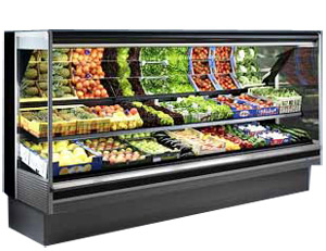 Для реализации овощей и фруктов лучше купить фруктовую горку, она представляет собой стеллаж с холодильным агрегатом, который поддерживает нужную температуру для продуктов.