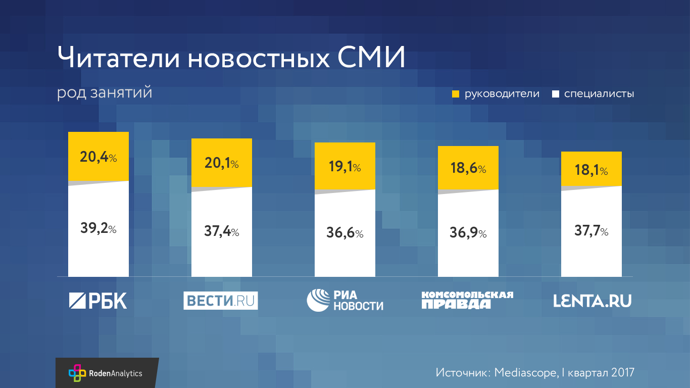 Команда #RodenAnalytics выявила какие новостные СМИ предпочитают руководители и специалисты -#РБК?, #ВЕСТИ.ru?, #РИА Новости?, #КомсомольскаяПравда #Lenta.Ru?