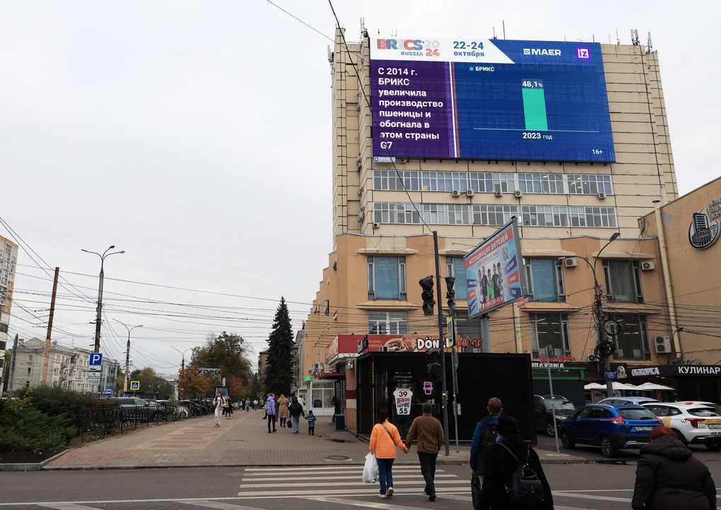 Международный саммит стран БРИКС проходит в Казани с 22 по 24 октября. Телеканал «Известия» совместно с медиахолдингом МАЕР транслируют ключевые новости форума на медиафасадах в крупных городах России.