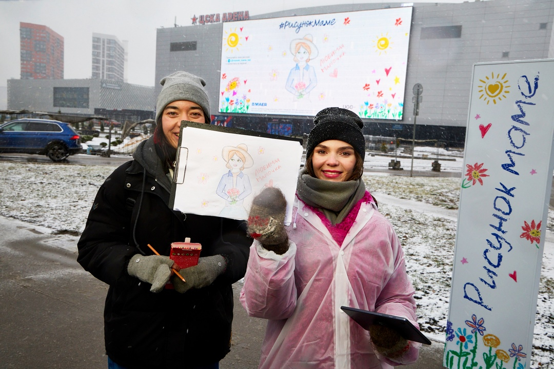 Сотни трогательных рисунков появились на медиафасадах от Москвы до Владивостока. Первый этап флешмоба прошел 20 ноября. К медиафасадам вышли волонтеры проекта, предлагая нарисовать картинку прямо на планшете или листе бумаги, уже через три минуты она появлялась на цифровом экране. 24 ноября – непосредственно в День матери – пройдет второй этап. Рисунки можно отправлять и через сайт рисунок-маме.рф, специальный телеграм-бот или просто выложить на своей страничке в соцсети с хештегом #РисунокМаме. В общей сложности за два дня картинки на медиафасадах смогут увидеть свыше 1,5 миллиона раз.