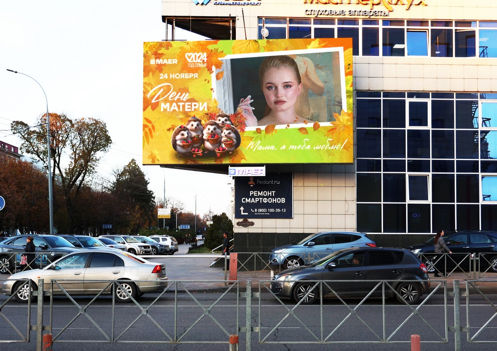 24 ноября – непосредственно в День матери прошел второй этап всероссийского флешмоба #РисунокМаме. Рисунки отправляли через сайт рисунок-маме.рф, специальный телеграм-бот, лучшие показывали на медиафасадах МАЕР. За два дня на медиафасадах их увидели свыше 1,6 миллиона раз.
