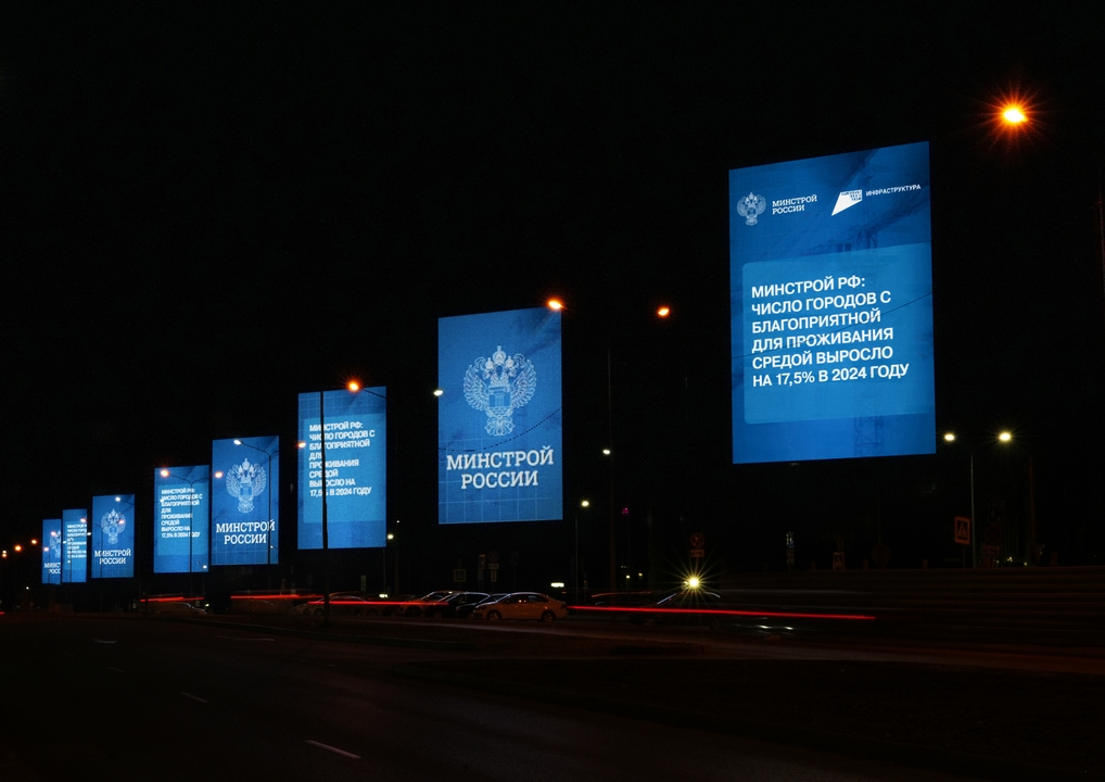 Новости размещены на медиафасадах и цифровых уличных экранах в топовых локациях с большими автомобильным и пешеходным трафиком. Информация подается в коротком и емком формате: насколько выросло число городов с благоприятной для проживания средой, сколько тысяч коммунальных объектов модернизировано за последние 5 лет, как застройщики помогают участникам СВО. С больших уличных экранов граждане могут узнать о восстановлении новых регионов, онлайн-голосовании за объекты благоустройства, конкурсах и интересной статистике.