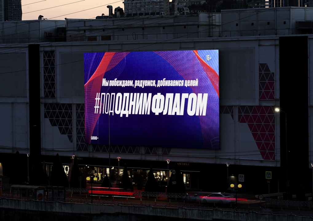 Тему единства затрагивает и проект UGC-центра #ПодОднимФлагом, в рамках которого на медиафасадах и цифровых уличных экранах по всей стране появились фотографии россиян с триколором.