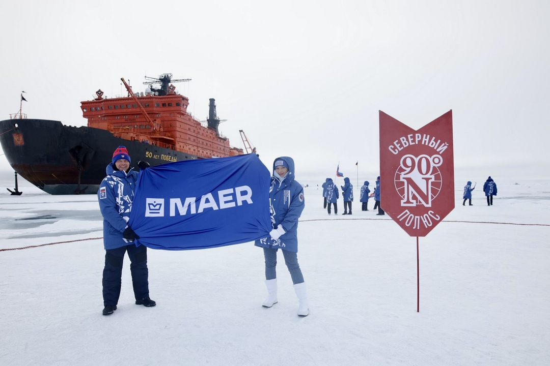 О всех самых значимых событиях экспедиции жителей крупных российских городов информировал медиахолдинг МАЕР. Его корреспондент также отправился в экспедицию и развернул флаг холдинга по прибытию на Северный полюс.
