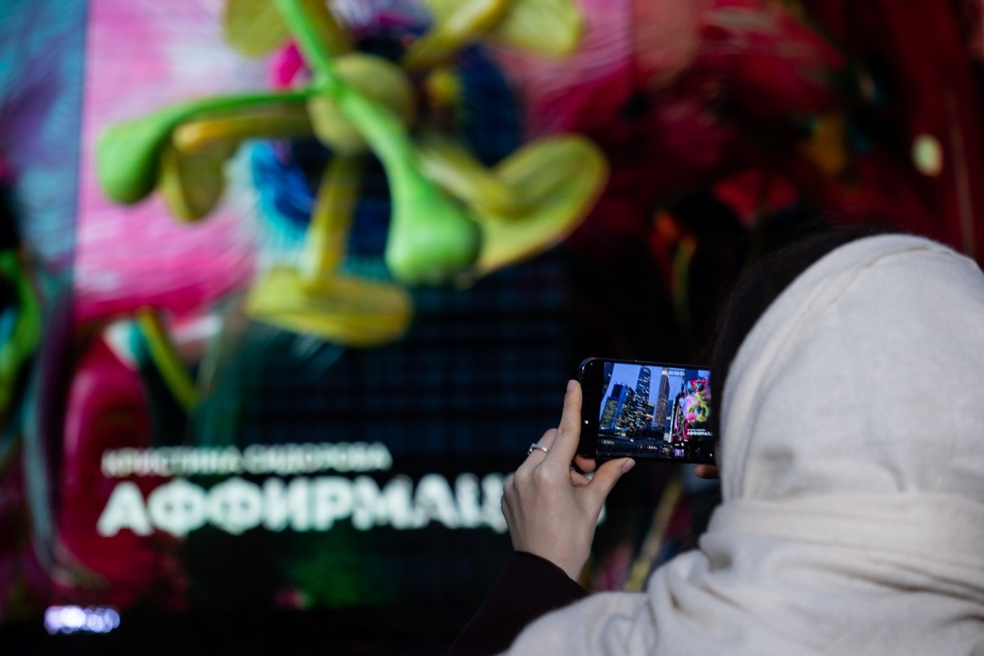 Зрители увидели цифровые версии произведений ведущих современных авторов, среди которых «Путь» Миши Most – работа о взаимосвязи науки, медицины и технологического прогресса; «Время цветов» Аристарха Чернышева, изображающая фигуру человека в цветочных мотивах; «Аффирмации» Кристины Сидоровой – цифровая инсталляция, размышляющая о будущем; а также работы мультимедийной студии SILA SVETA.