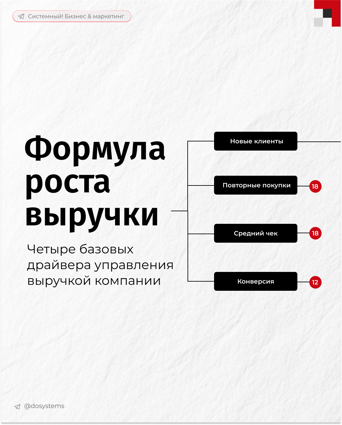 Выручка почти любого бизнеса управляется четырьмя параметрами: