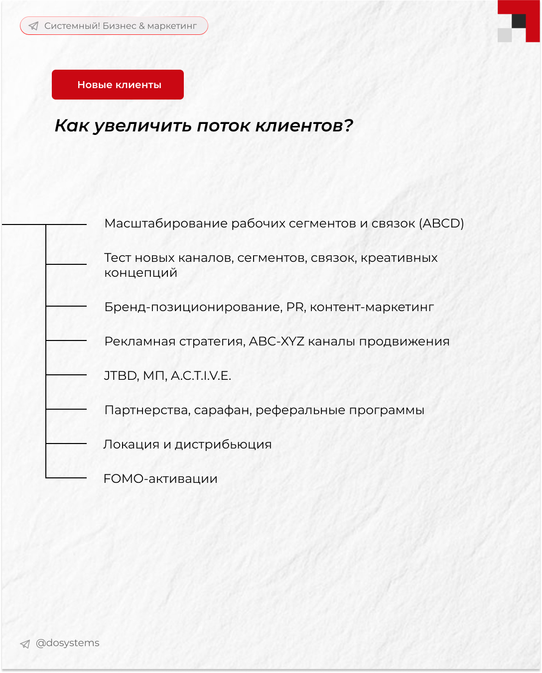 После замера становится понятно, какой рычаг даст наибольший эффект при наименьших вложениях и, в большинстве случаев, это не новые клиенты.