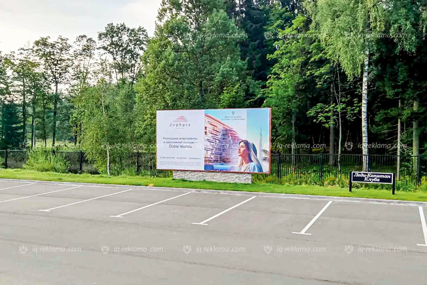 Пестово — закрытый клуб с развитой инфраструктурой, построенный по международным стандартам. Расположен в живописном районе с гольф-полями разной сложности и панорамными видами. Аудитория клуба — владельцы бизнеса и VIP-гости, ценящие активный отдых, спорт и комфорт. Билборды установлены на парковке у центрального въезда, что обеспечивает прямое взаимодействие с посетителями.